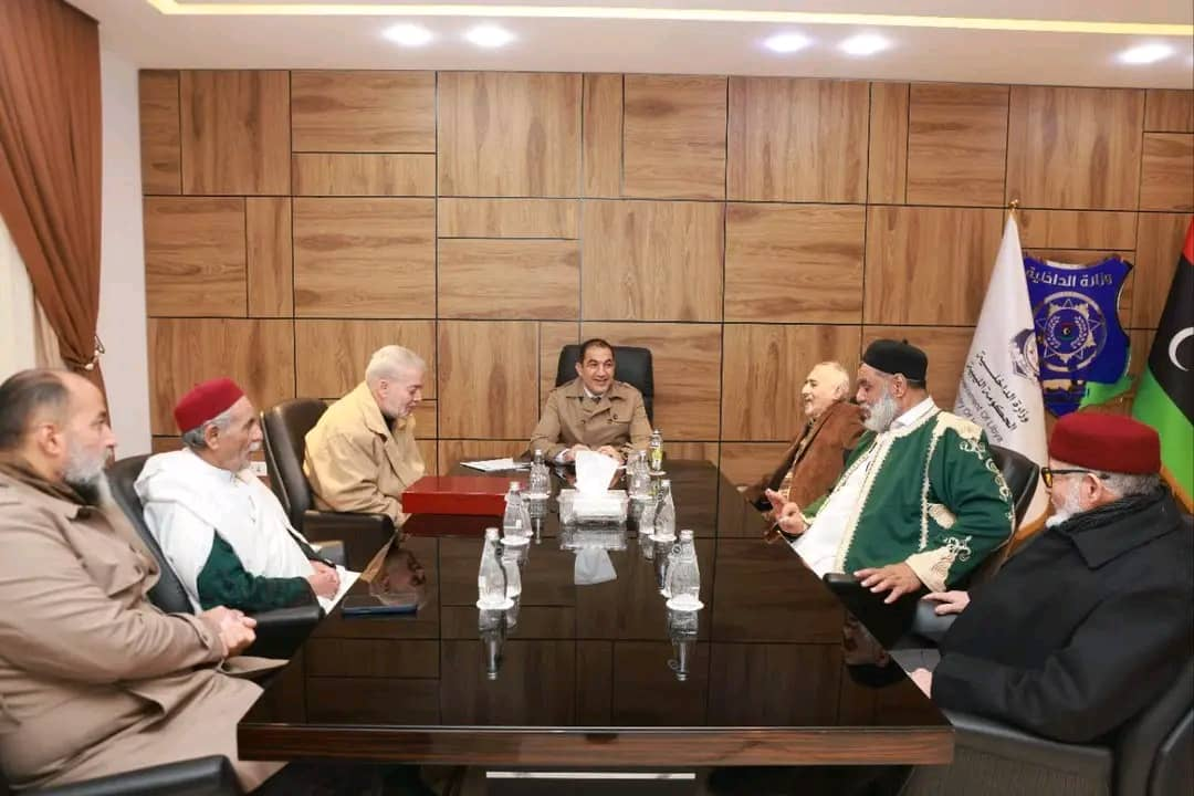 وعبّر وفد مشايخ مصراتة عن تقديرهم للجهود التي يبذلها معالي وزير الداخلية، ودعمه المتواصل للعمل الأمني، وحرص الوزارة على بناء جهاز أمني مهني قادر على أداء واجباته بكفاءة، مؤكدين وقوفهم إلى جانب مؤسسات الدولة، واستعدادهم للتعاون الكامل مع وزارة الداخلية بما يسهم في حفظ الأمن والاستقرار وخدمة الصالح العام