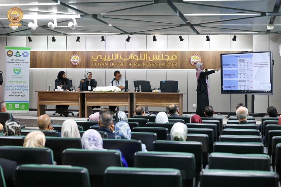 استضاف ديوان مجلس النواب في بنغازي المؤتمر العلمي لكلية الصحة العامة 2025 بعنوان دور الصحة العامة في الوقاية من المرض وتعزيز الصحة في ليبيا الذي نظمته كلية الصحة العامة بجامعة بنغازي برعاية هيئة التأمين الطبي بحضور نائب رئيس لجنة الصحة والبيئة الدكتور حسن الزرقاء وعضو مجلس النواب الدكتور علي الصول ونائب رئيس ديوان المجلس الدكتور رسمي بالروين وعدد من الخبراء والباحثين في المجال الصحي.