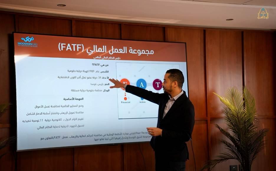 نظم مكتب الاتصال والتواصل ومركز البحوث والدراسات بالتنسيق مع منظمة ممكن للتوعية والإعلام وبحضور موظفين من الإدارة العامة للرقابة على المصارف ورشة عمل استعرضت دور مجموعة العمل المالي FATF في مواجهة جرائم غسل الأموال وتمويل الإرهاب كما تناولت التوصيات الأربعون للمجموعة ومقارنة الوضع في ليبيا ببعض الدول إضافة إلى مناقشة التحديات وخطوات الاستعداد للتقييم المرتقب في العام 2029.